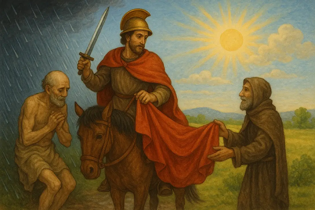 Martino di Tours, un soldato romano, un giorno vide un mendicante infreddolito sotto la pioggia. Senza esitare, tagliò a metà il suo mantello e ne donò una parte al pover’uomo. Poco dopo, racconta la tradizione, il cielo si aprì e il sole tornò a splendere, come se la natura stessa volesse ringraziarlo per quel gesto di carità.
